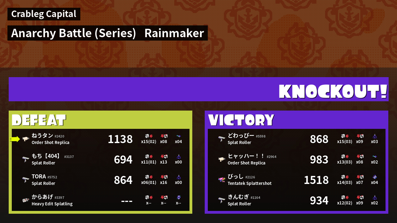 | Mode | Rainmaker - Anarchy Battle (Series) | ||