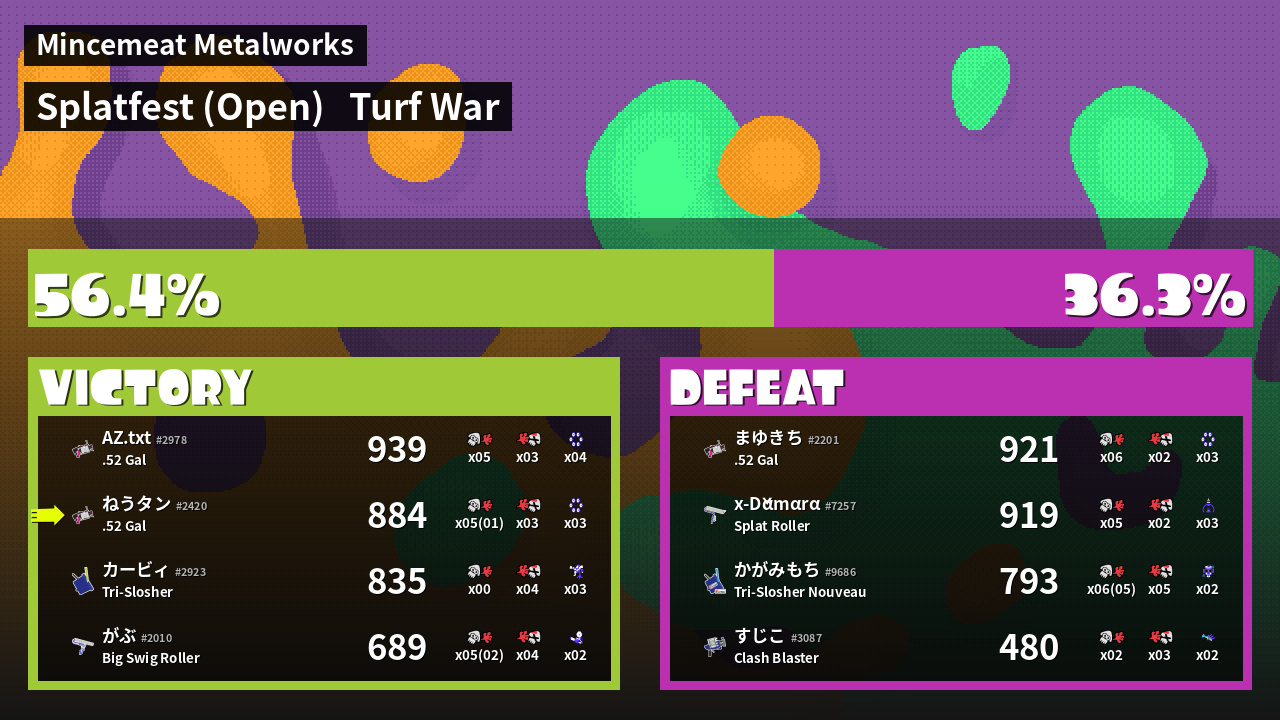 | Medals | #1 Overall Splatter #1 Damage Taker #2 Turf Inker | ||