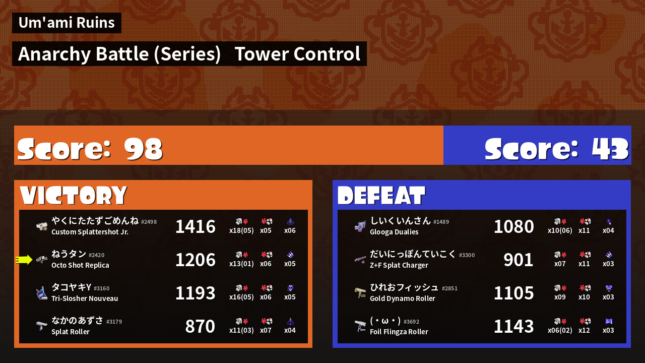 Results of ねうタン's Battle