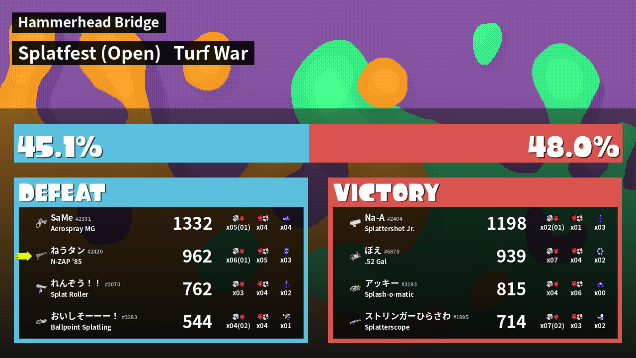 | Mode | Turf War - Splatfest (Open) | ||