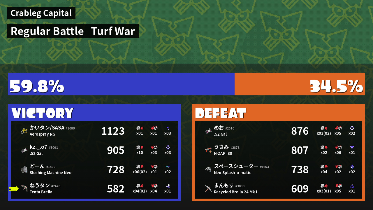| Medals | #2 Popular Target #2 Enemy-Base Inker #2 Splat Assister | ||