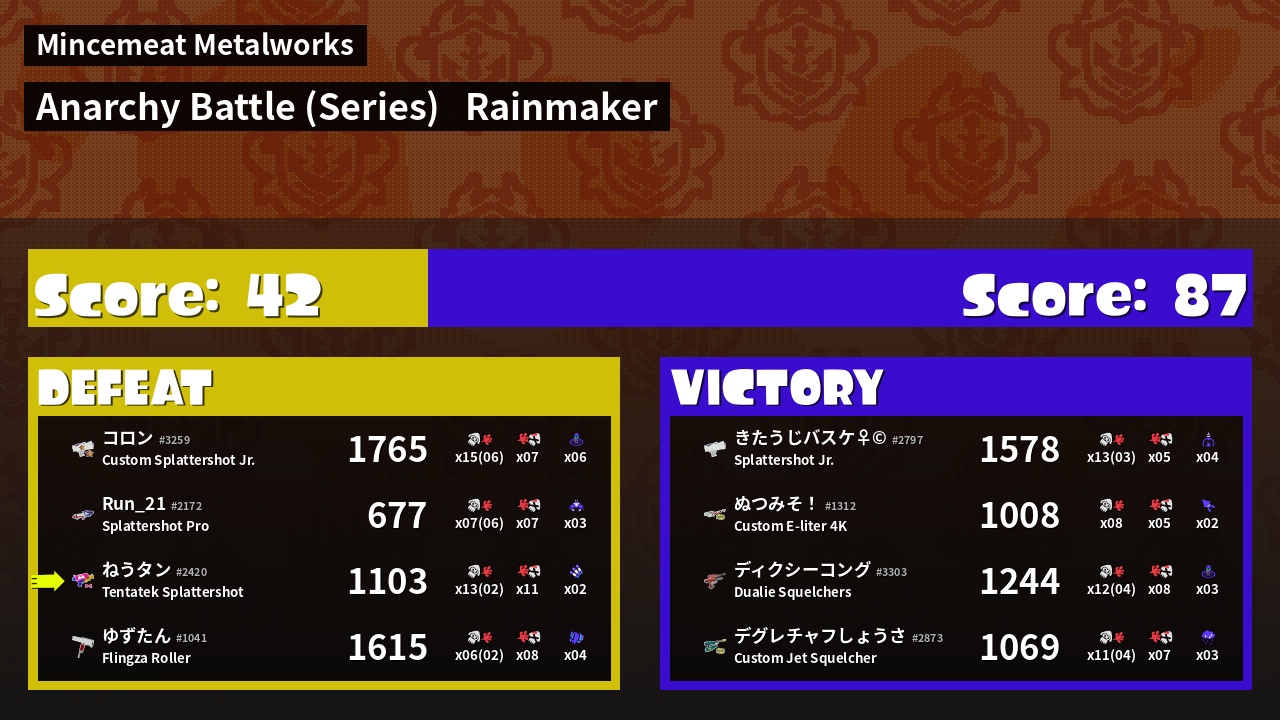 Kills / Deaths | 11 + 2 / 11 = Kill Ratio: 1.00 | ||