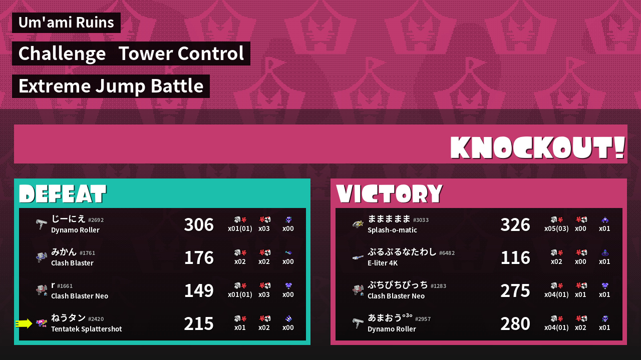 | Medals | #2 Overall Splatter #2 Turf Inker #2 Enemy Splatter | ||