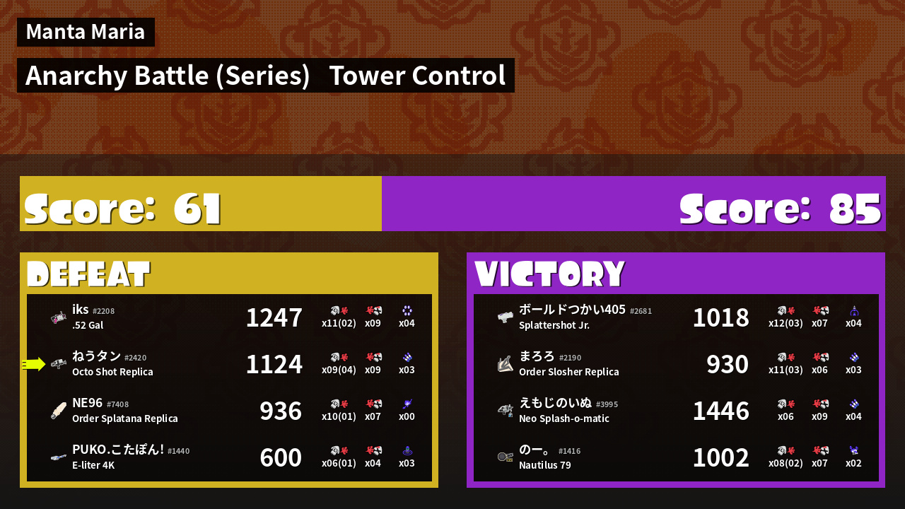 | Mode | Tower Control - Anarchy Battle (Series) | ||