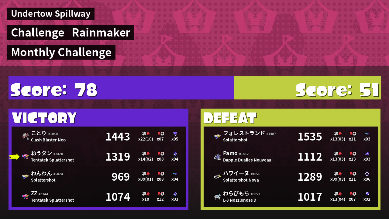 | Weapon | Tentatek Splattershot ( Splat Bomb / Triple Inkstrike) | ||