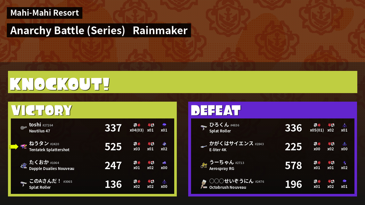Results of ねうタン's Battle