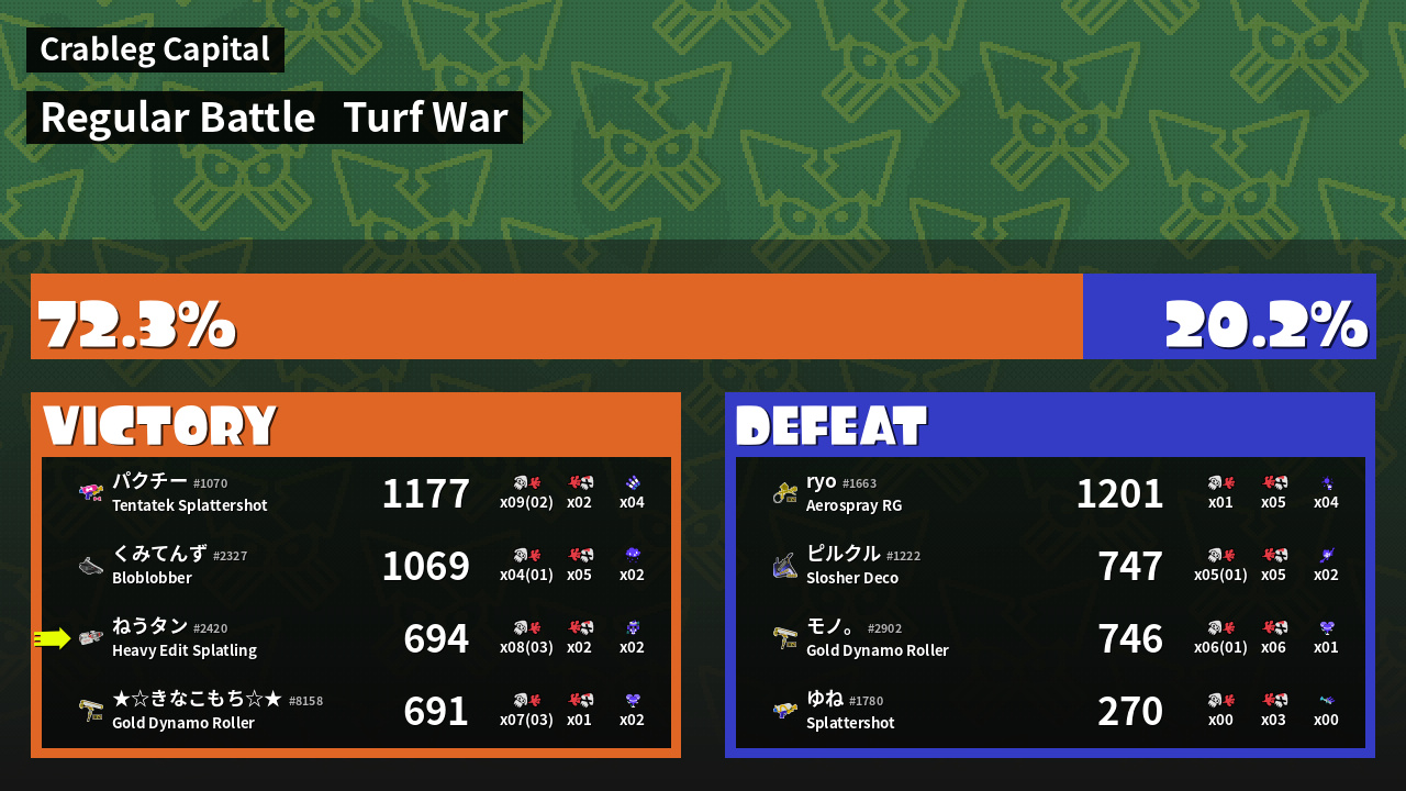 | Weapon | Heavy Edit Splatling ( Curling Bomb / Tacticooler) | ||