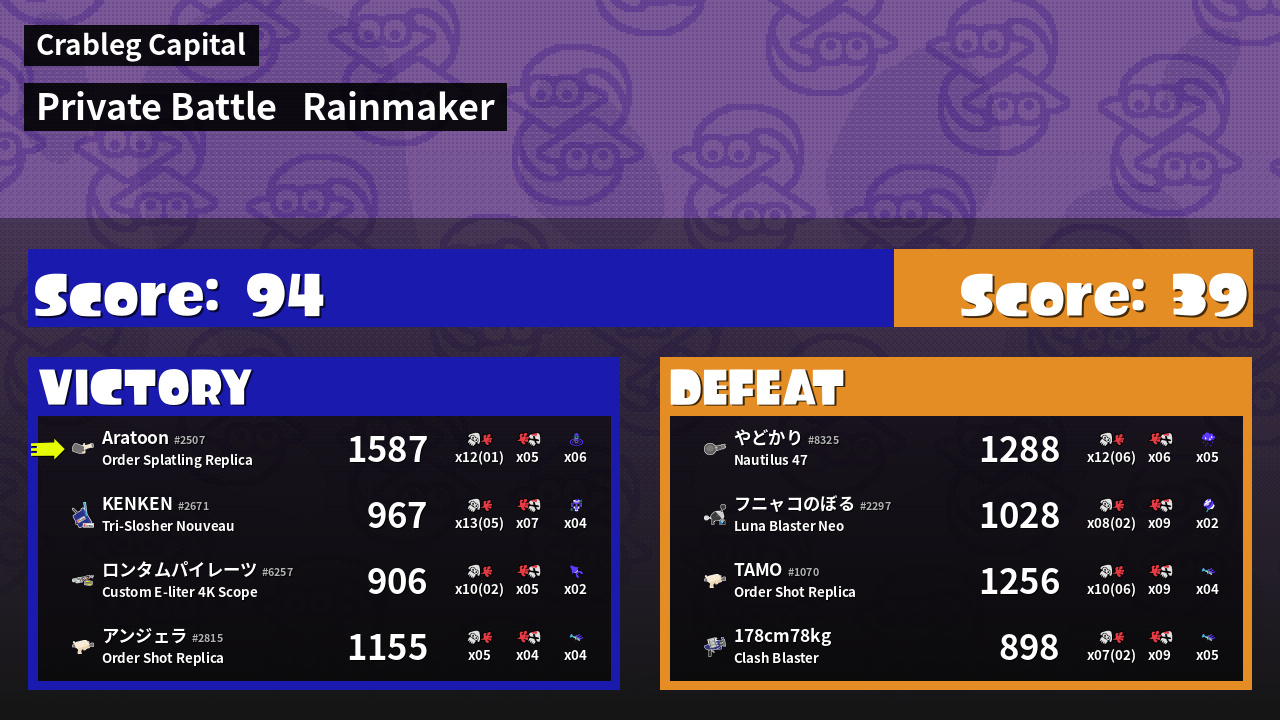 Kills / Deaths | 11 + 1 / 5 > Kill Ratio: 2.20 | ||