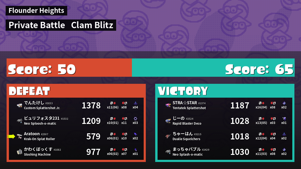 | Name | Weapon | Inked |  k |  d | KR | Sp | |