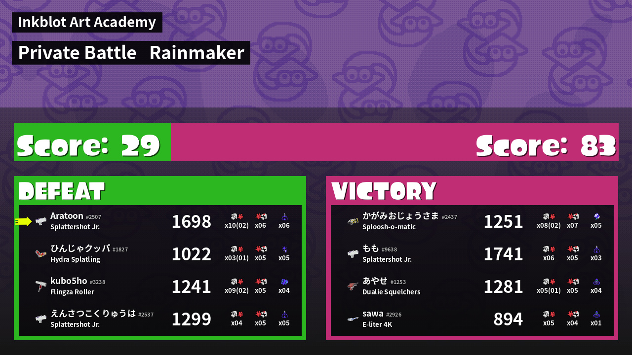 | Medals | #1 Overall Splatter #1 Turf Inker #1 Popular Target | ||