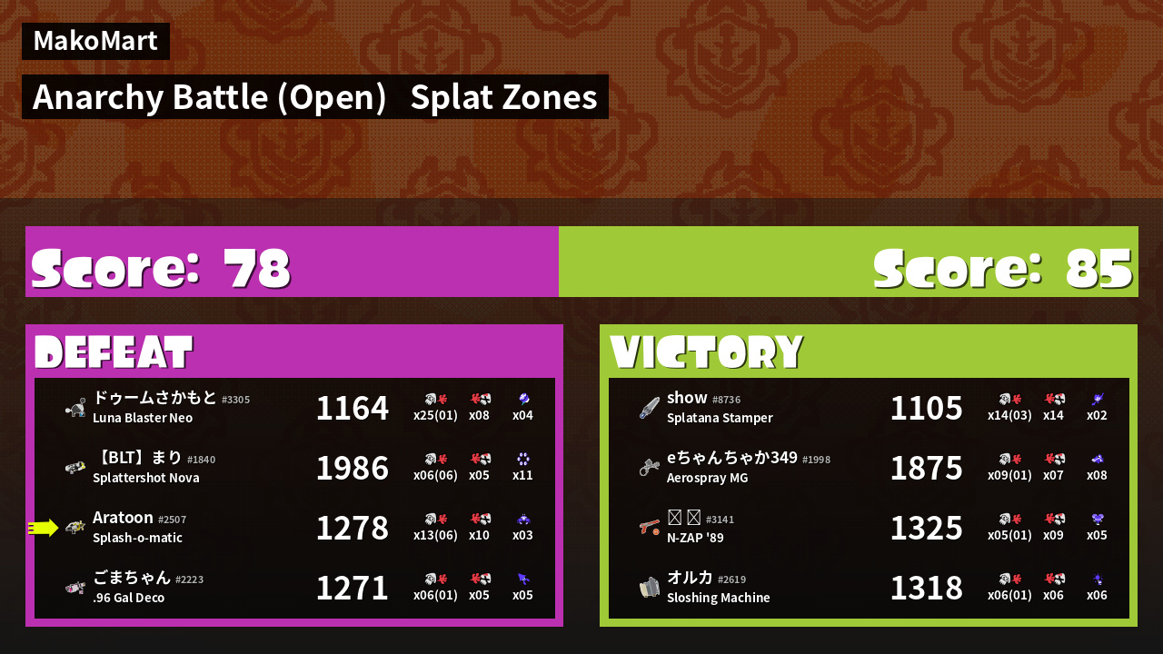 | Mode | Splat Zones - Anarchy Battle (Open) | ||