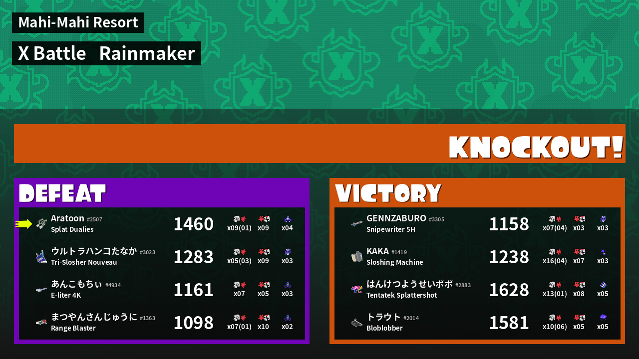 | Medals | #1 Overall Splatter #1 Turf Inker #1 Enemy Splatter | ||