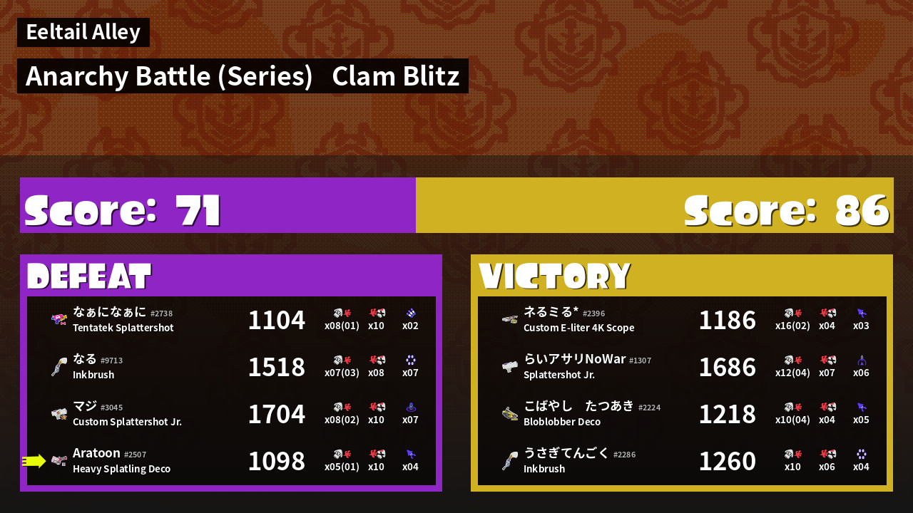 | Mode | Clam Blitz - Anarchy Battle (Series) | ||
