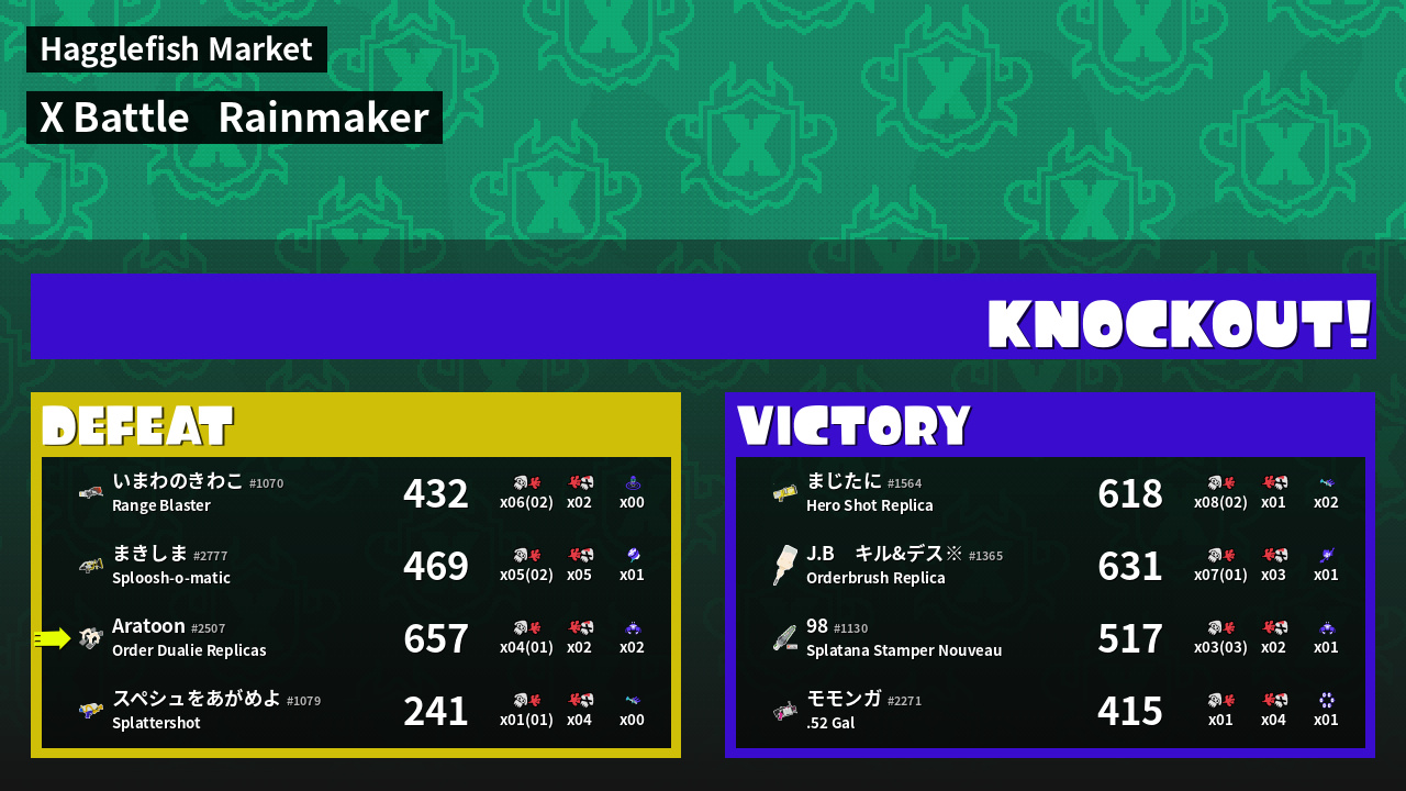 | Mode | Rainmaker - X Battle | ||