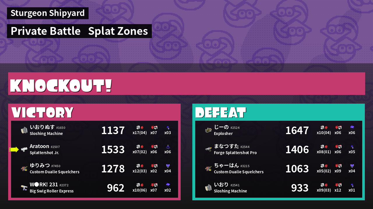 | Mode | Splat Zones - Private Battle | ||
