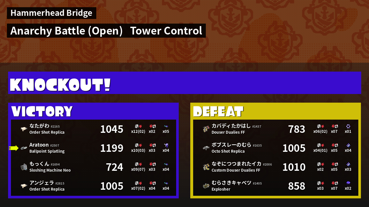 | Mode | Tower Control - Anarchy Battle (Open) | ||