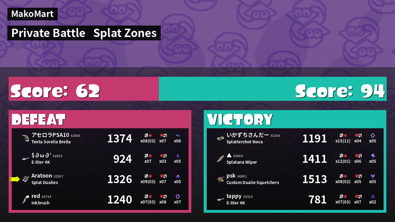 | Medals | #1 Overall Splatter #1 Splat Assister #1 Ink Consumer | ||