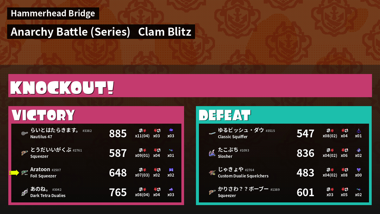 | Mode | Clam Blitz - Anarchy Battle (Series) | ||