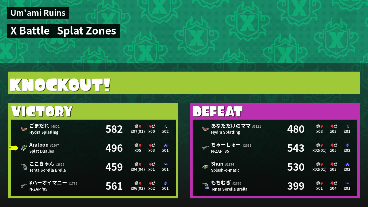 | Mode | Splat Zones - X Battle | ||
