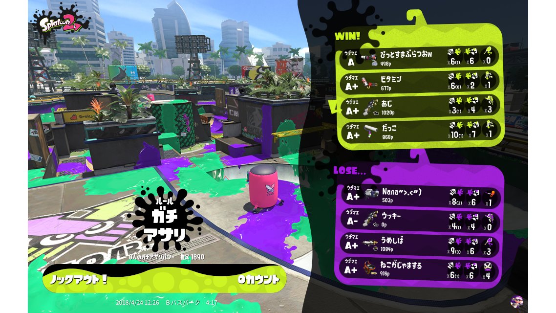| Name | Weapon | Level | Rank | Inked | k+a/sp | k/d |