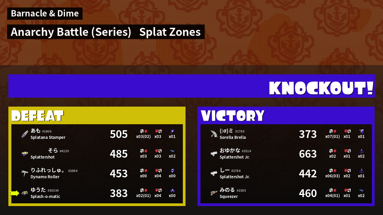 | Mode | Splat Zones - Anarchy Battle (Series) | ||