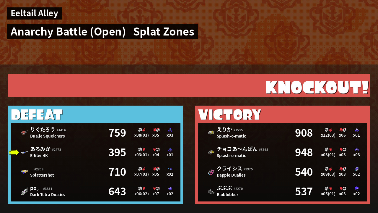| Mode | Splat Zones - Anarchy Battle (Open) | ||