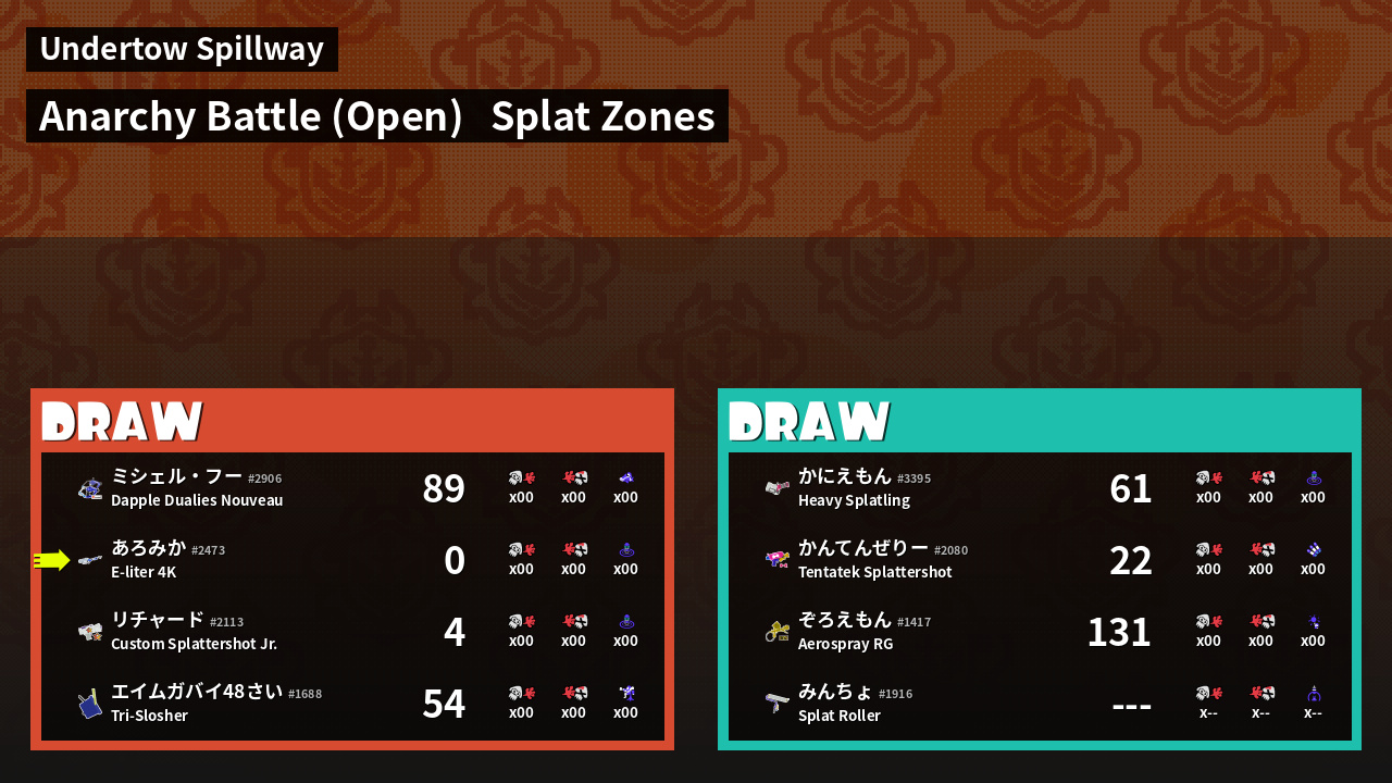 | Mode | Splat Zones - Anarchy Battle (Open) | ||