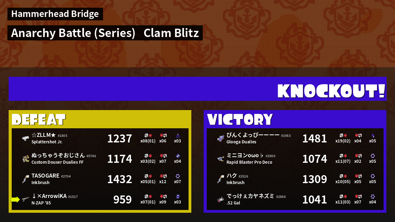 | Mode | Clam Blitz - Anarchy Battle (Series) | ||