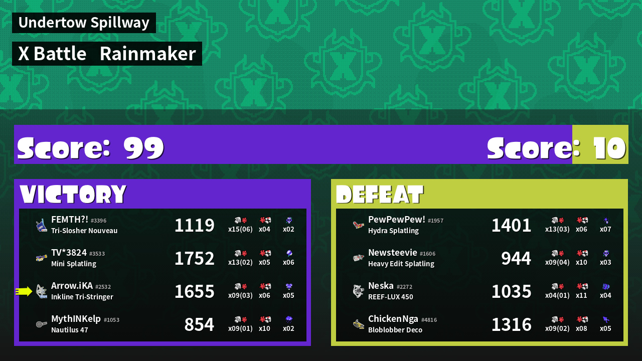 | Weapon | Inkline Tri-Stringer ( Sprinkler / Super Chump) | ||