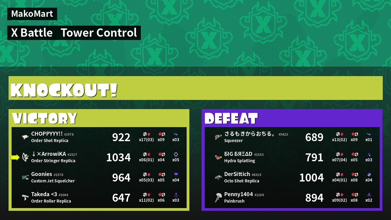 | Mode | Tower Control - X Battle | ||