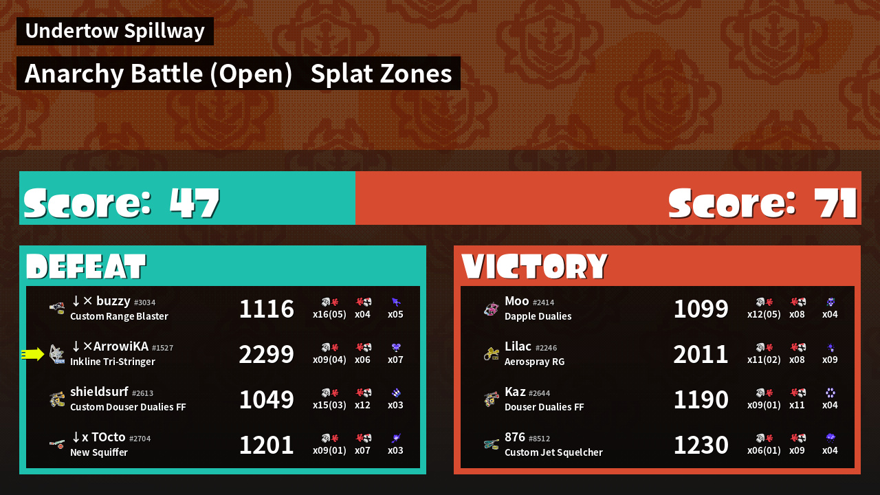 | Mode | Splat Zones - Anarchy Battle (Open) | ||