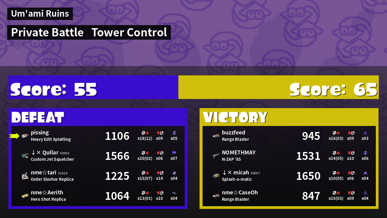 | Medals | #1 Overall Splatter #1 Score Booster #1 Super Jump Spot | ||