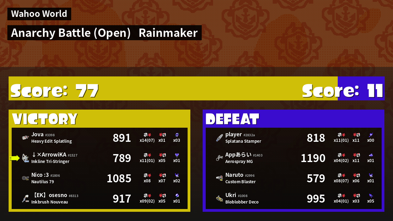 | Mode | Rainmaker - Anarchy Battle (Open) | ||