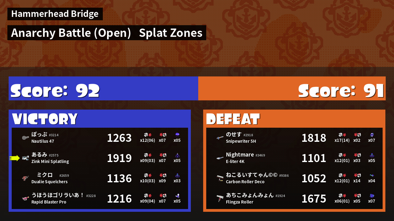 | Mode | Splat Zones - Anarchy Battle (Open) | ||