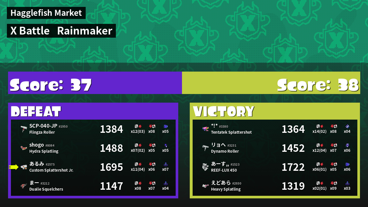 | Medals | #1 Turf Inker #1 Splat Assister #1 Damage Taker | ||