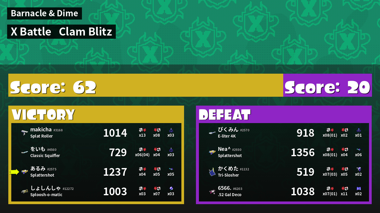 | Mode | Clam Blitz - X Battle | ||