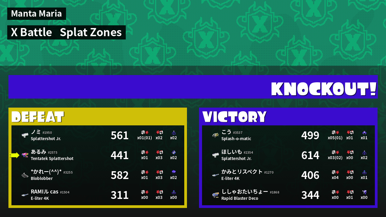 | Weapon | Tentatek Splattershot ( Splat Bomb / Triple Inkstrike) | ||