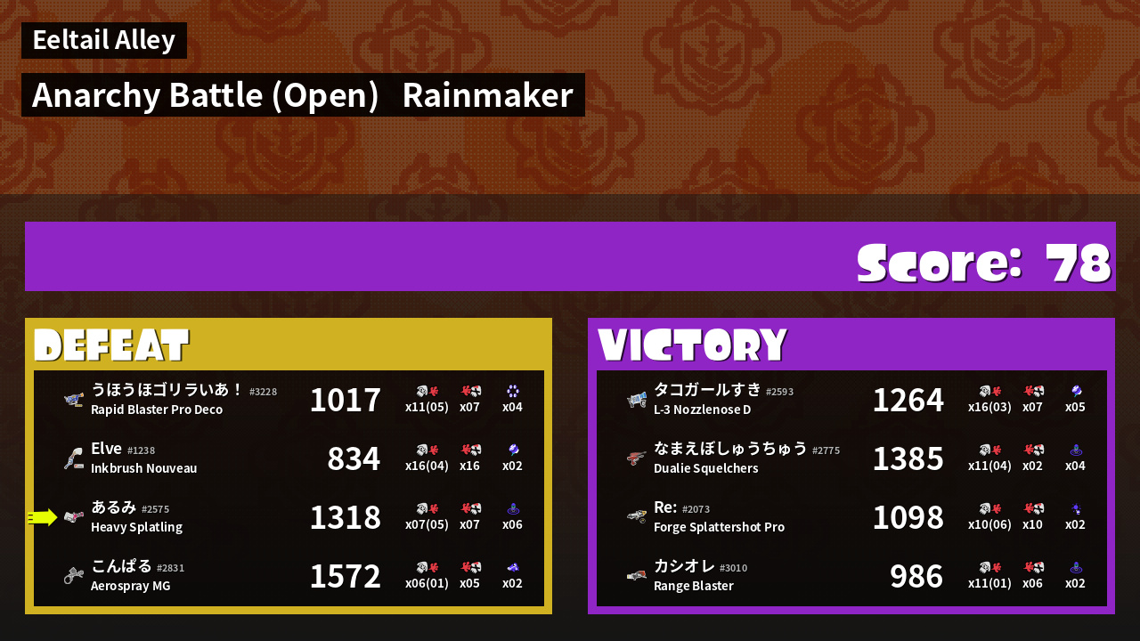 | Mode | Rainmaker - Anarchy Battle (Open) | ||