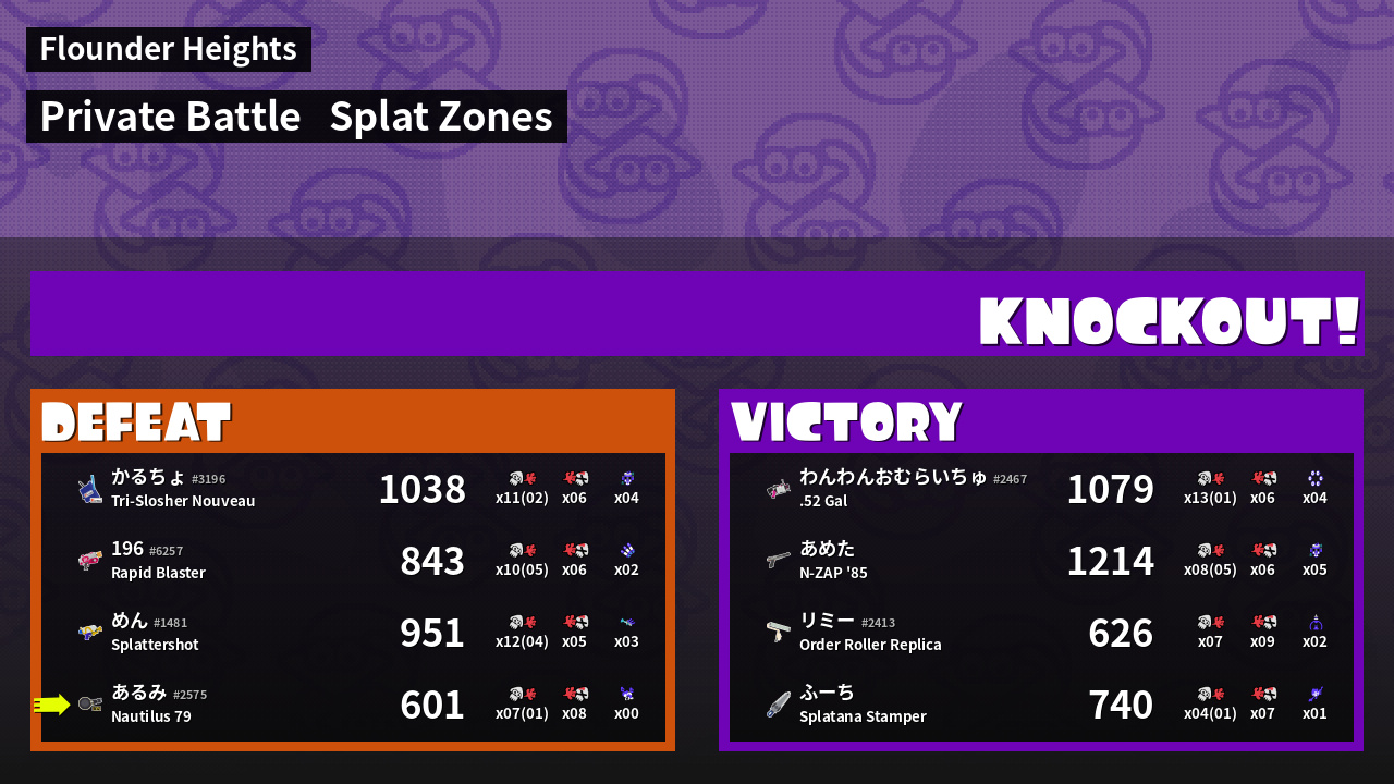 | Mode | Splat Zones - Private Battle | ||