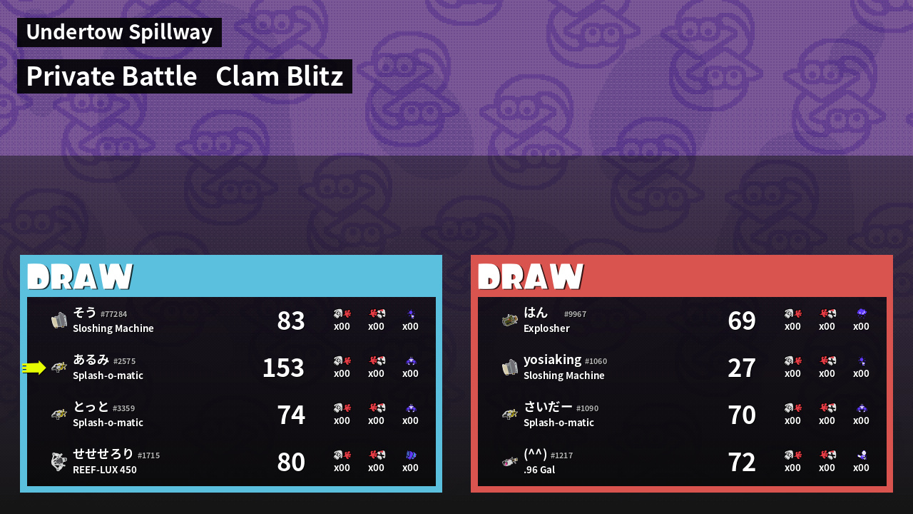 | Mode | Clam Blitz - Private Battle | ||
