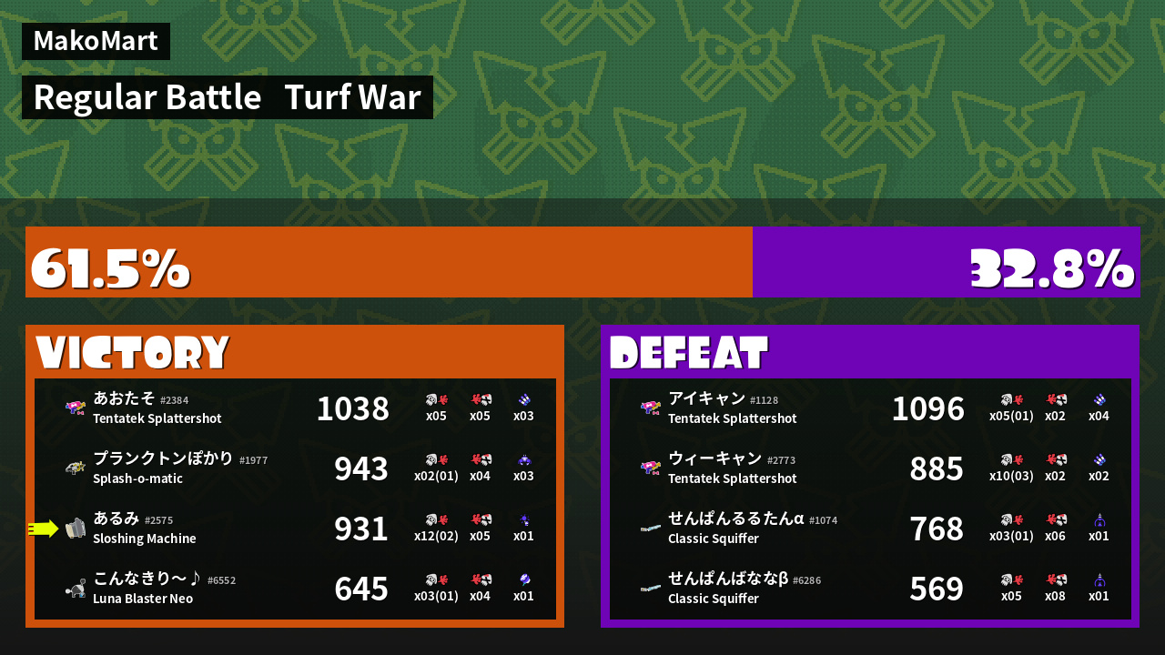 | Mode | Turf War - Regular Battle | ||
