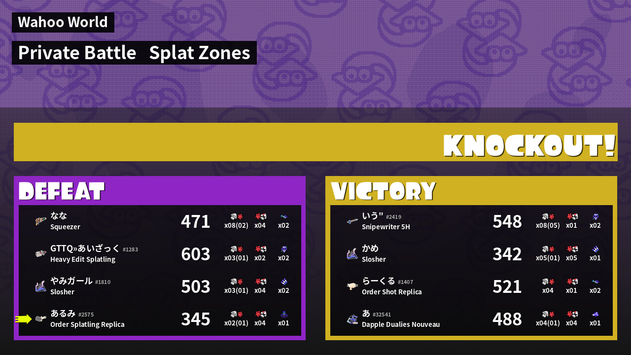 | Medals | #1 Super Jump Spot First Splat! #1 Wave Breaker User | ||