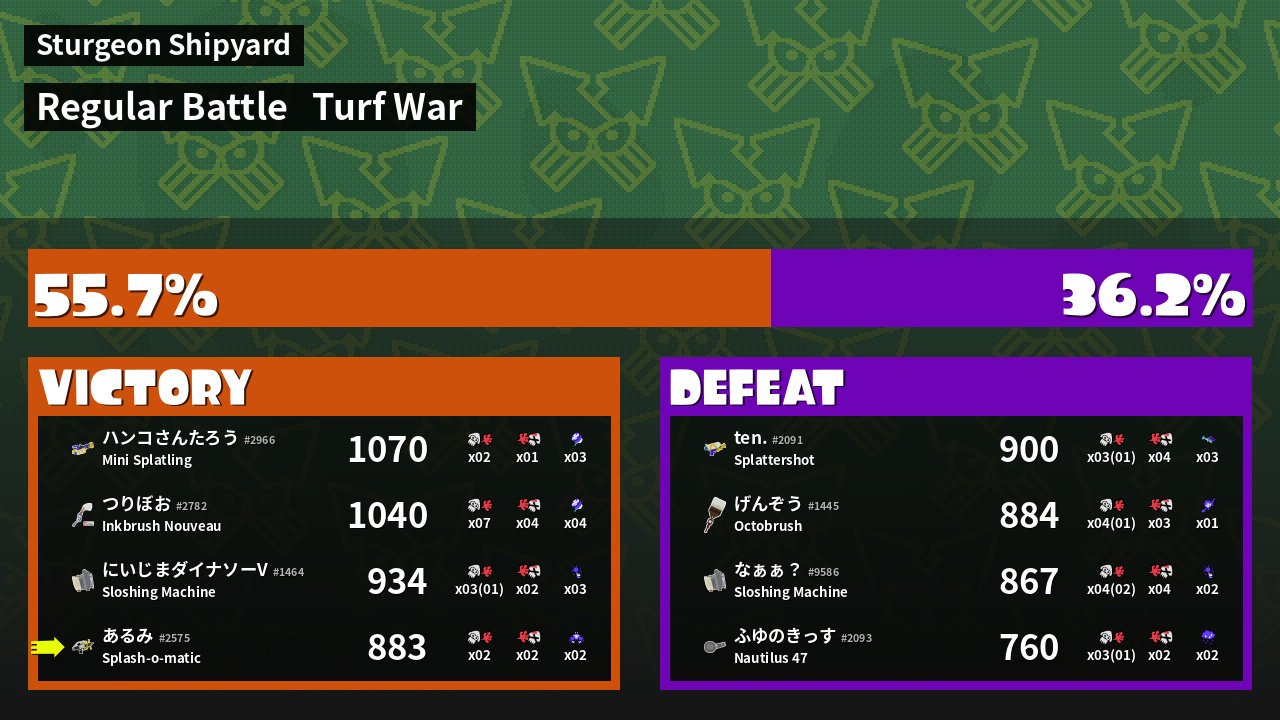 | Medals | #1 Ink Consumer #2 Home-Base Inker #2 Enemy-Base Inker | ||