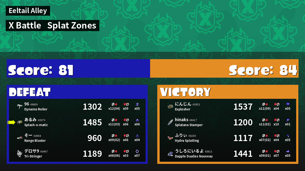 | Medals | #1 Splat Zone Guard #1 Turf Inker #1 Enemy Splatter | ||