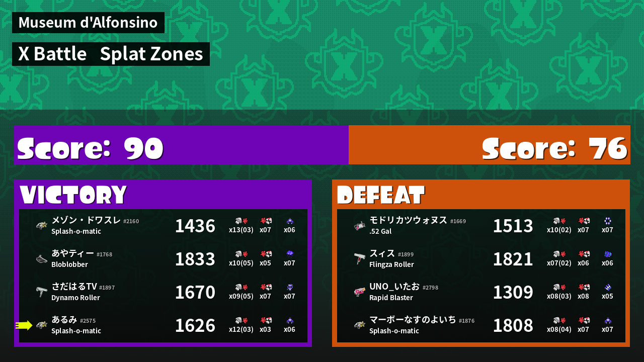 | Mode | Splat Zones - X Battle | ||