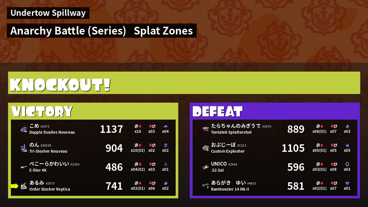 | Mode | Splat Zones - Anarchy Battle (Series) | ||
