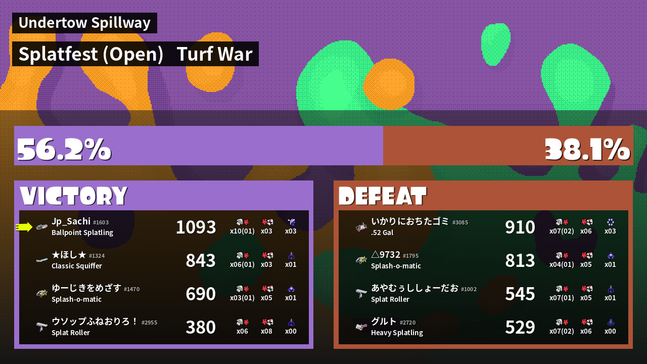 | Medals | #1 Overall Splatter #1 Turf Inker #1 Enemy-Base Inker | ||