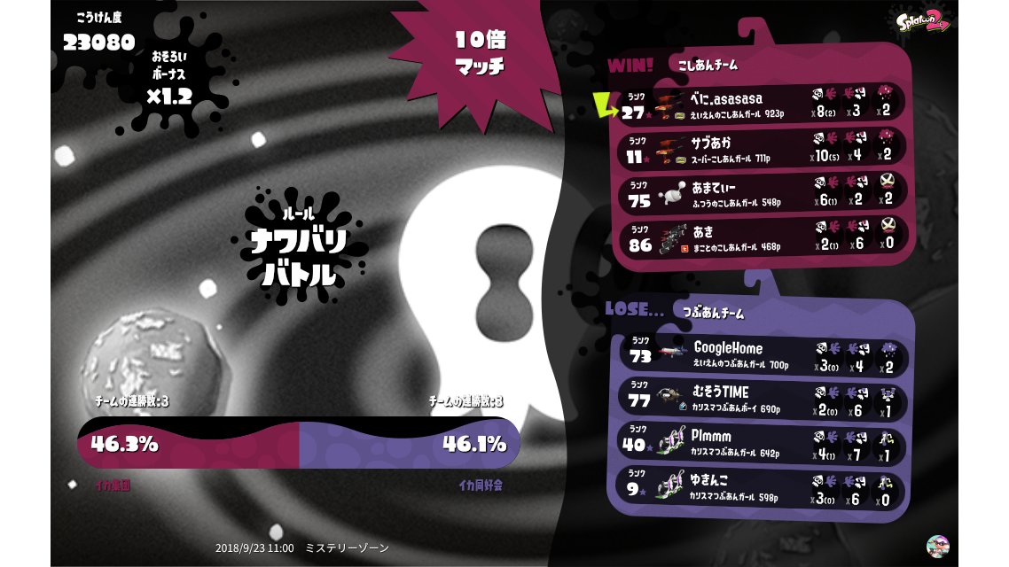 | Mode | Turf War - Splatfest (Team) | ||||||||||||||||||||||||||||||||||