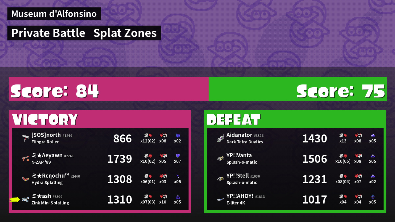| Medals | #1 Splat Assister #1 Big Bubbler User #2 Turf Inker | ||