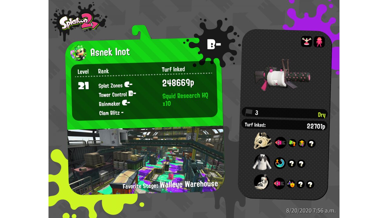 | Mode | Turf War - Regular Battle | ||||||||||||||||||||||||||||||||||